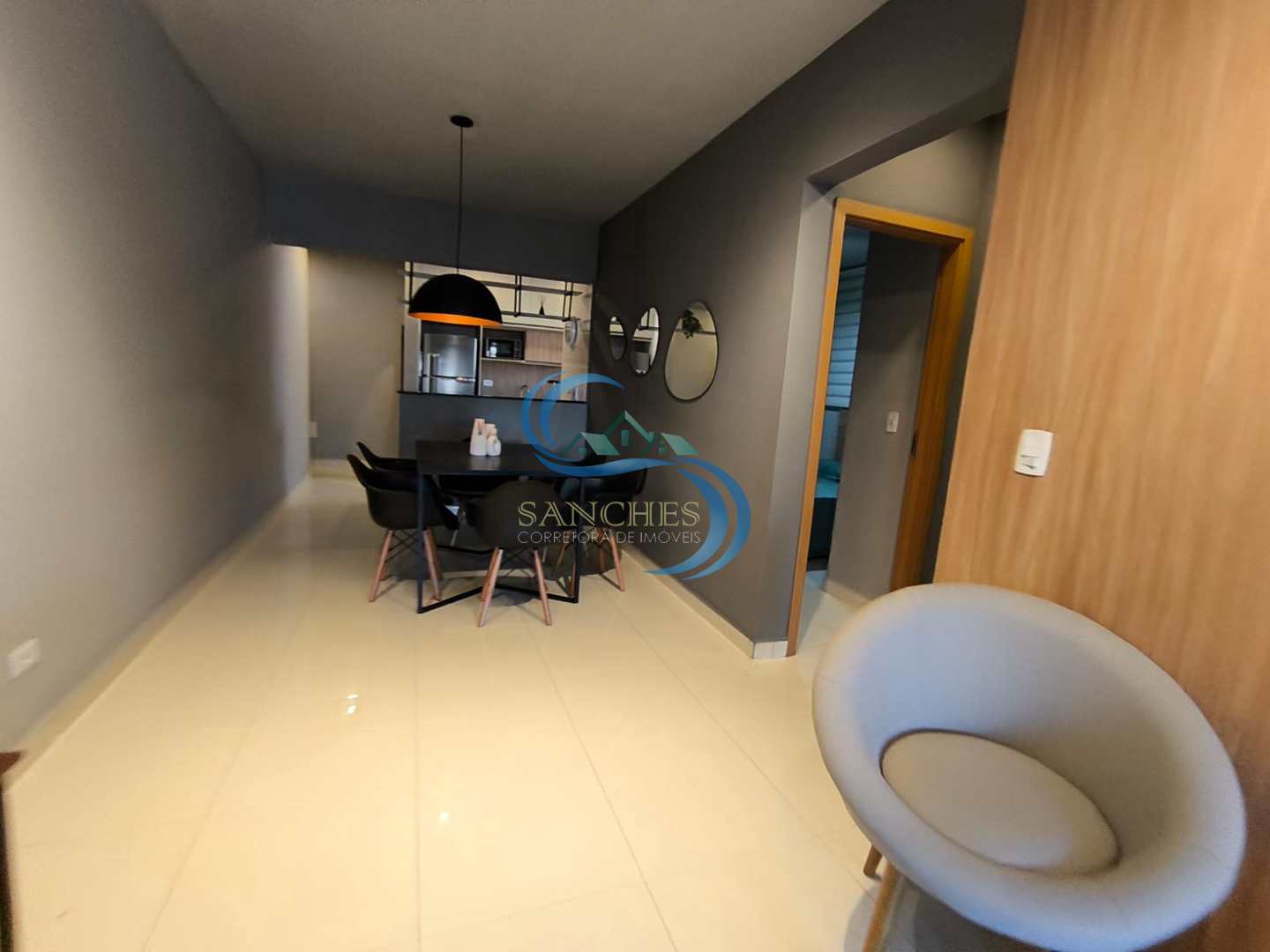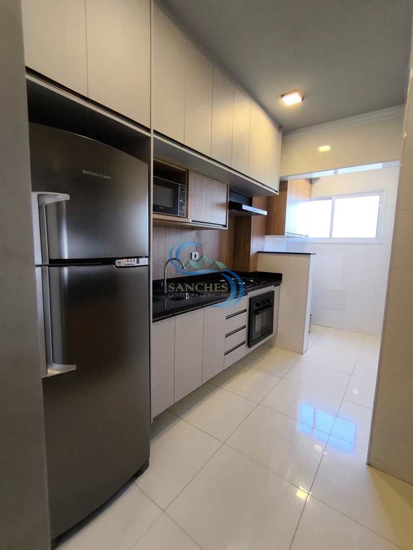 Belíssimo apartamento mobiliado,em Praia Grande no bairro da Aviação com 2 dormitórios, sendo 1 suíte, sala, cozinha, banheiro social, área de serviço e 02 vagas de garagem.